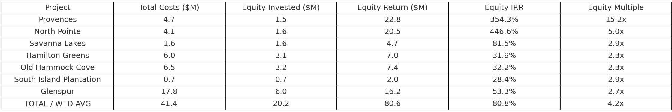 Investor Performance: $20.2 million of equity generated $80.6 million in total profits, including $49.4 million in property value and $31.2 million in cash distributions.