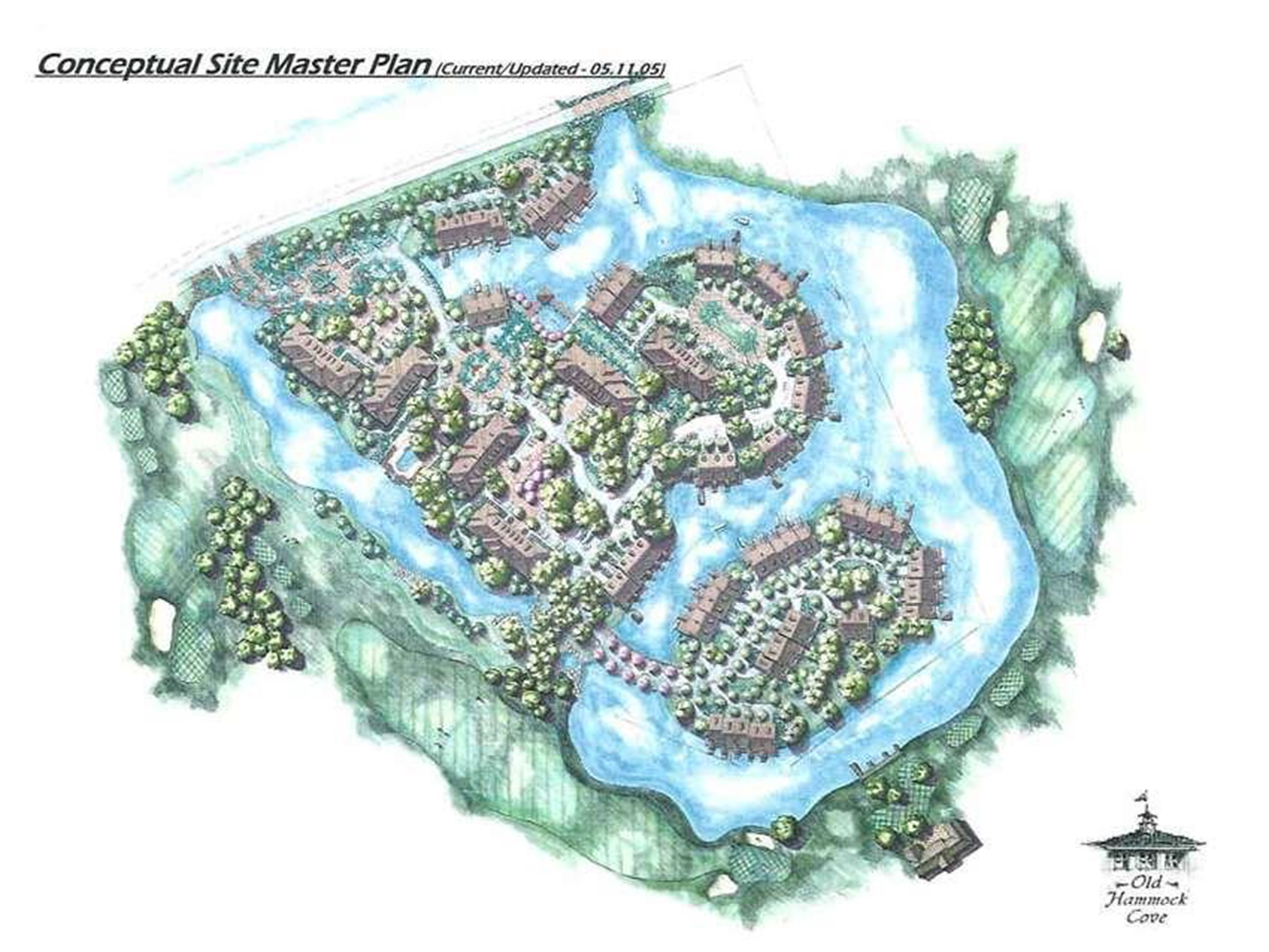 Old Hammock Cove was envisioned as a private, gated, multi-family master-planned community of 136 units, including unique boathouse townhomes and condominiums, situated on 30 acres near the Intracoastal Waterway in Palm Coast, Florida. The property was bordered on three sides by a navigable canal with direct access to the Intracoastal Waterway. Many units were designed to be constructed directly on the water with integrated boat garages below, while others overlooked fairways of the adjacent Palm Harbor Golf Club. The property was also located near several additional golf clubs, including an oceanfront Jack Nicklaus Signature course. The community plan featured a clubhouse, swimming pool, spa, and fitness facilities.